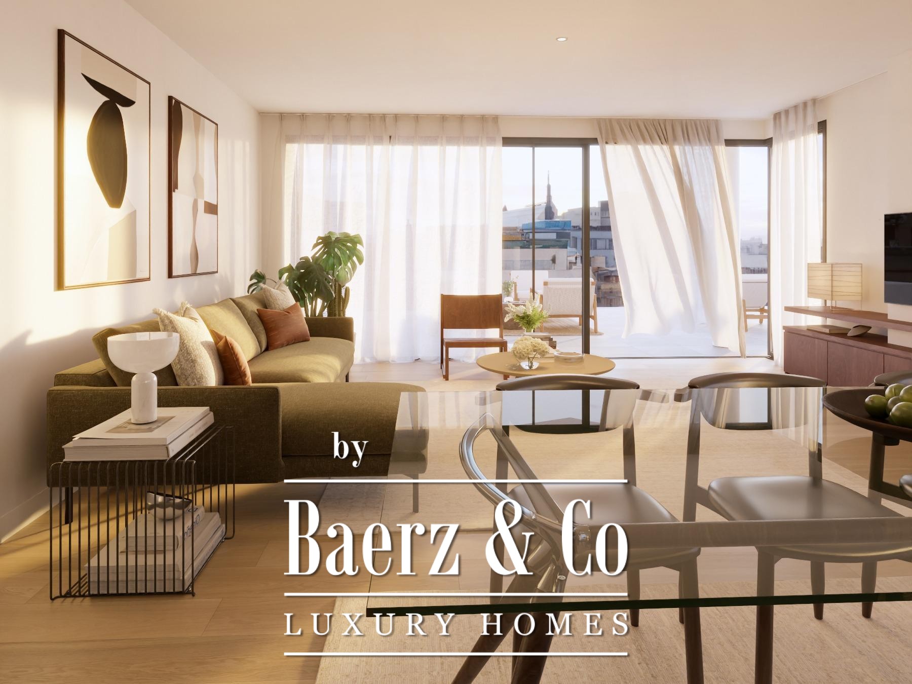 De penthouse-indeling biedt drie rustige slaapkamers, elk voorzien van ingebouwde kasten. De master suite beschikt over een en-suite badkamer. De open woon- en eetruimte sluit naadloos aan op een moderne keuken, die baadt in natuurlijk licht en via schuifdeuren toegang geeft tot het terras. Hier omlijsten panoramische vergezichten elk samenzijn en ieder stil moment, terwijl een aparte wasruimte het dagelijks gemak ondersteunt.