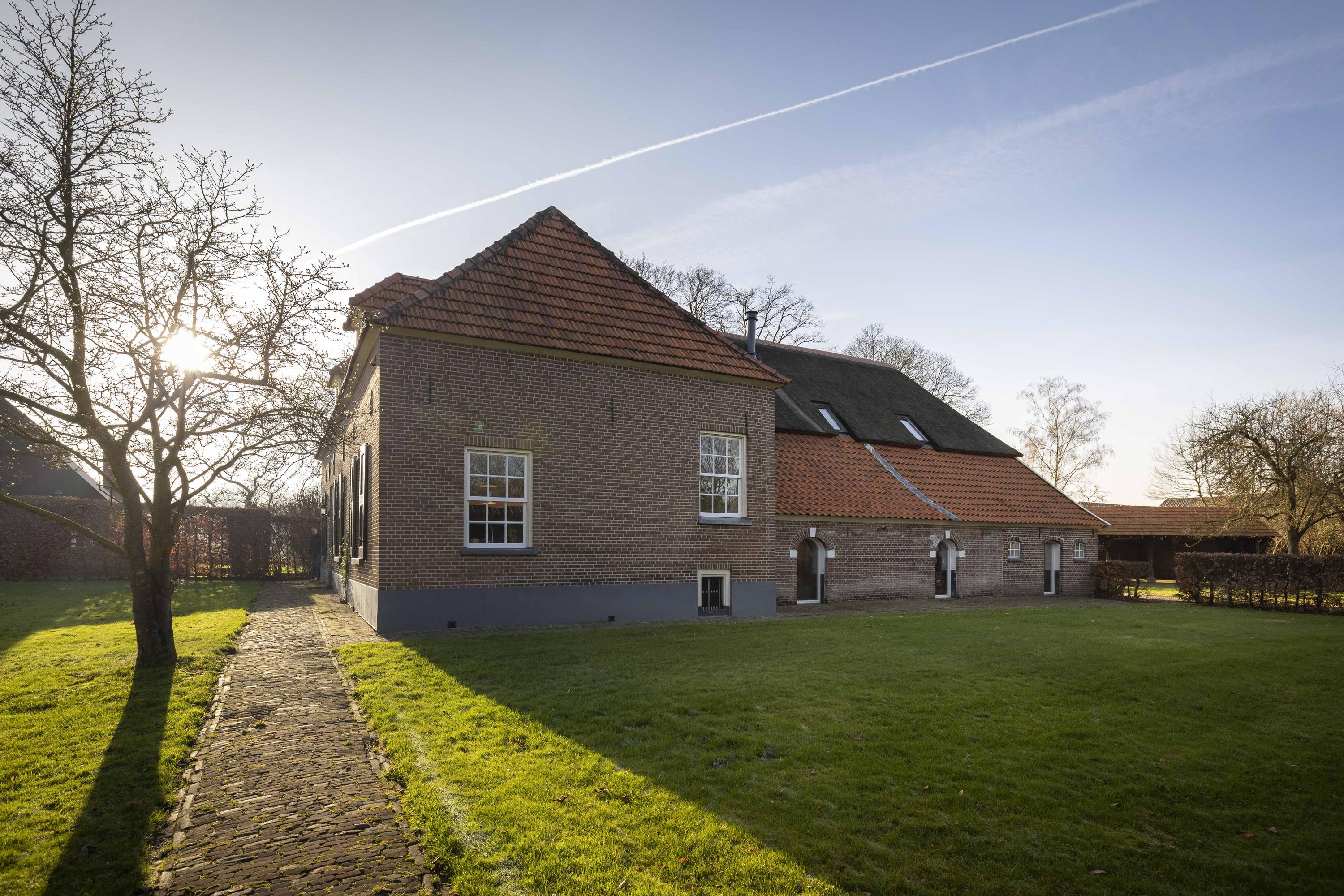 In de zon straalt het huis je tegemoet, met de frisse rode pannen, de strakke voegen, het in 2021 vernieuwde geschroefde rietdak en al het fraaie houtwerk dat dik in de lak zit. Ondanks haar lange historie is Erve ’t Norde ook onder de motorkap helemaal bij de tijd: de huidige bewoners hebben de boerderij van top tot teen verduurzaamd, met o.a. een dik isolatiepakket, HR++-glas, 45 zonnepanelen en een super efficiënte leemkachel, waarmee is ze klaar voor de volgende 163 jaar.