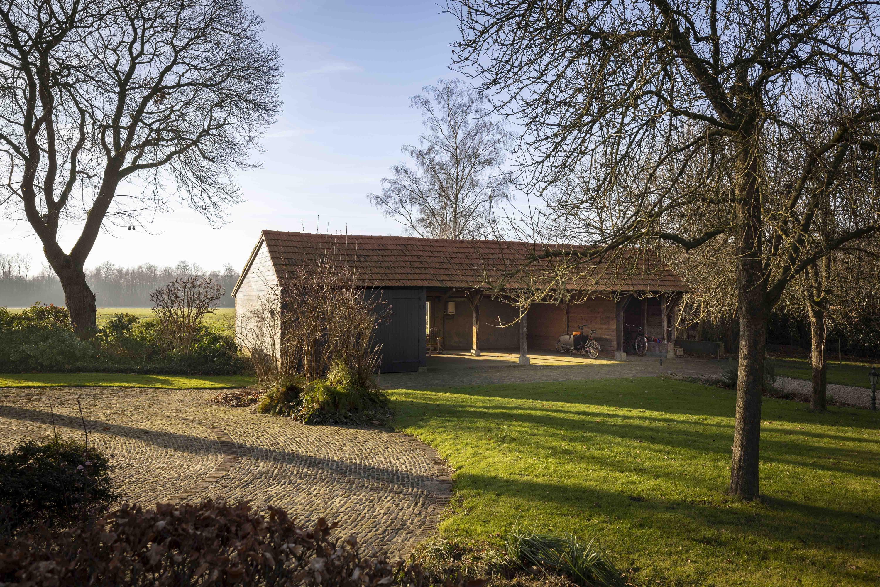 Bijgebouwen: Een vrijstaand houten bijgebouw ten behoeve van tuingereedschap, fietsen en opslag alsmede een in landelijke stijl geheel nieuw gebouwde dubbele carport annex wagenloods.