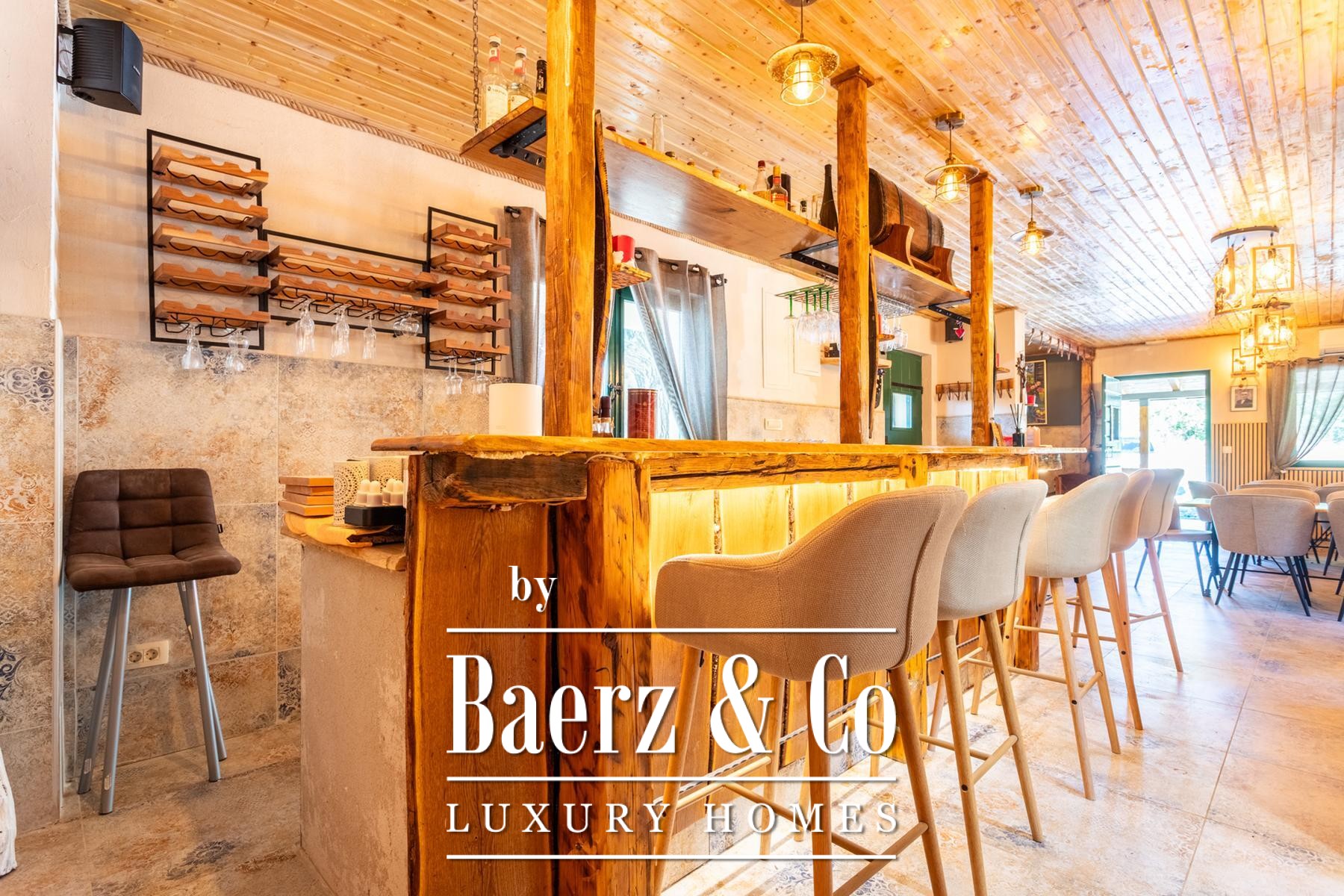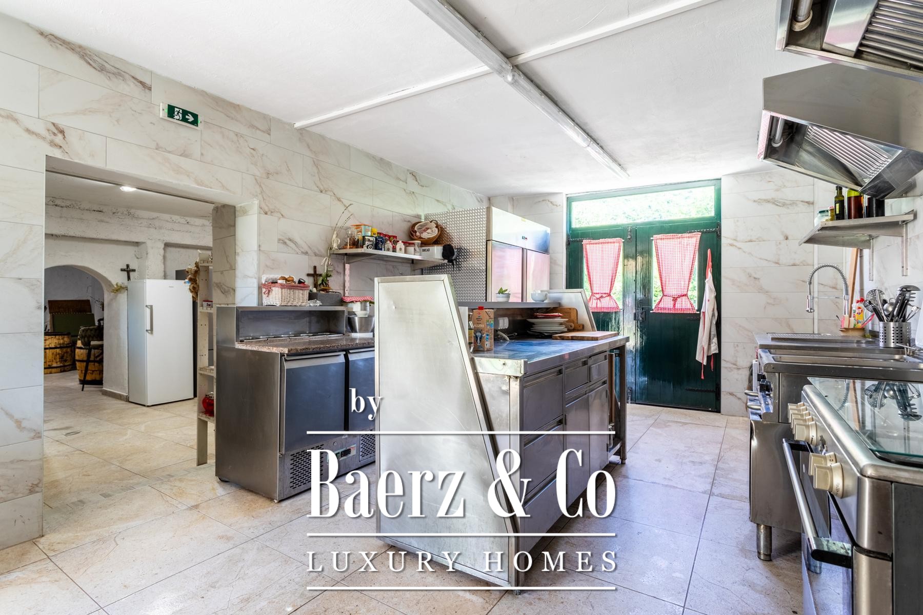 sunbathing area made of natural pebbles. The entire pool area is discreetly enclosed by stone walls and lush natural greenery, ensuring complete privacy.The estate also offers numerous additional amenities for complete enjoyment. There is a modern bocce court, a spacious garden with olive trees, and a dedicated space for animals. Three dilapidated houses offer exceptional potential for further renovation and expansion. For gourmet experiences, there is a furnished tavern, a small wine cellar, and a professionally equipped kitchen. This exceptional property is an ideal opportunity for multiple families or one seeking a spacious home with opportunities for relaxation, entertainment, and creating unforgettable memories in the heart of Dalmatia.