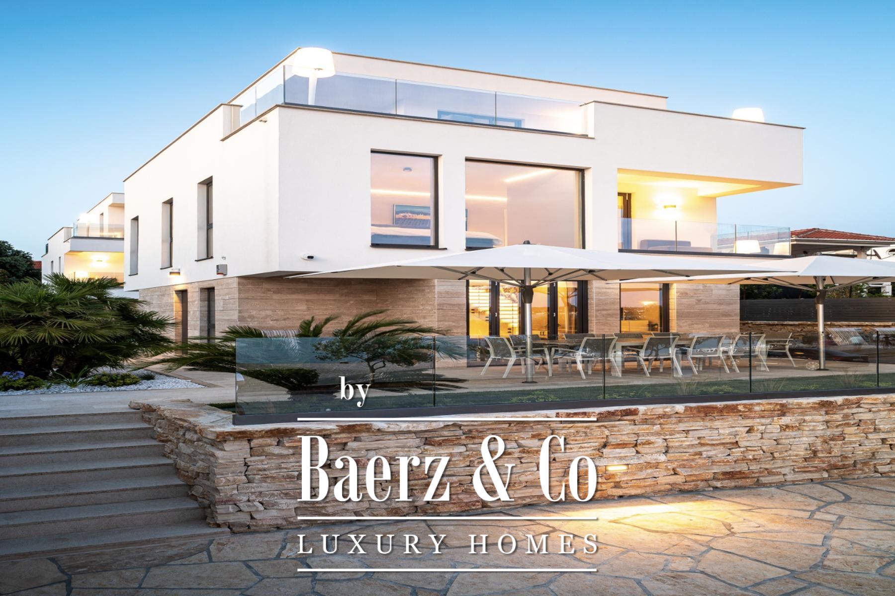Het luxe villa complex aan zee in Vrsi biedt een zeldzame kans om twee moderne, volledig uitgeruste villa’s met directe toegang tot de Adriatische Zee te verwerven. Deze exclusieve eigendom, voltooid in 2020, ligt op de absolute eerste strandlijn, waar het vrije uitzicht op zee en baai elke ruimte kenmerkt. Riante ramen van vloer tot plafond laten het mediterrane licht en panorama’s binnenstromen in zorgvuldig vormgegeven interieurs, met een perfecte balans tussen privacy en openheid voor familie of vrienden.