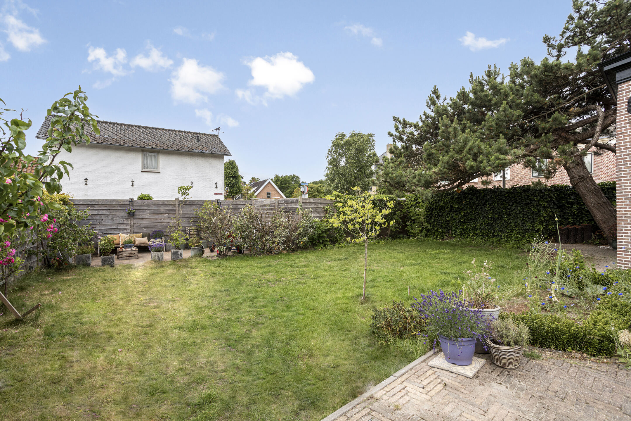 Zeer ruime, ommuurde tuin met veel privacy en een achterom met parkeerplaats. Een tweede parkeerplaats bevindt zich naast de voordeur.
